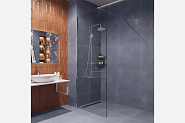 Современная душевая зона без поддона. Обычно используется душевой трап, который монтируется прямо в пол, а пространство отделяется стеклянной душевой перегородкой.
